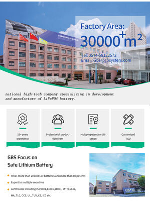 Zhejiang GBS is a national high-tech enterprise dedicated to the research, development, and manufacturing of lithium iron phosphate batteries and lithium battery integration systems. Established in July 2007, the company operates a digital demonstration factory in Zhejiang province with two production bases boasting an annual production capacity of 2 GWh.